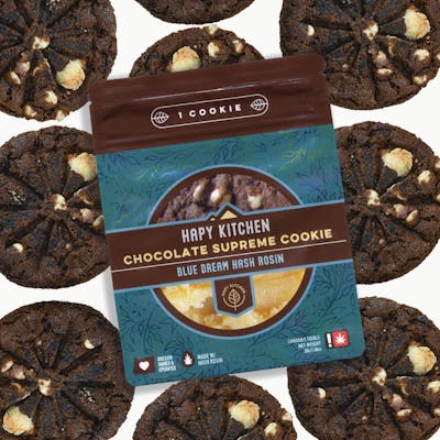 "Fans love our classic chocolate chip cookie, but we just knew that we had more to bring to the table when it came to cannabis cookies. We wanted more chocolate, the best quality solventless THC possible, and the most pointed, consistent effect we could produce. In comes our Chocolate Supreme + Blue Dream Cookie! With a soft, chewy center and crispy, chocolatey edges, our double chocolate supreme cookie is a twice-as-nice treat that will please both your taste buds and your mind. We’ve crafted this elevated classic with 100mg of the top shelf Blue Dream hash rosin for a nostalgic treat with a high-end twist. With strain-specific ingredients, this one-of-a-kind cookie is consistent and effect-focused – because the effect from your edible should never be a surprise.