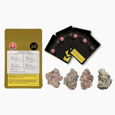 Premium Craft flower grown with love in Princeton BC, featuring 4 mouth watering exotic cultivars bred by Compound Genetics, Cannarado and Symbiotic Genetics. Each cultivar has its own unique aroma and flavour profile dominated by loud gas and fruity overtones. Glue 31 (GG4 x Jokerz) brings old and new school flavours together with loud funky gas and earthy coffee aromas with a fruity back end. Sundae Best (Sundae Driver x Jet fuel Gelato) leans heavily towards the original Sundae Driver profile, with a grape-y cereal milk nose and jet fuel gas finish. On the sweeter side of things, Modified Grapes brings a fruity grape flavours and aromas true to its name, dark purple nugs and caked in frosty white trichomes. Tribute 7 (Apples and Bananas x Gelato 41) 'bubblegum' pheno has a creamy sweet dessert profile with gas overtones. BC Green craft flower is grown small batch, hang dried, hand trimmed, cold cured, never irradiated and never any pesticides or fungicides. 100% craft BC Bud.
