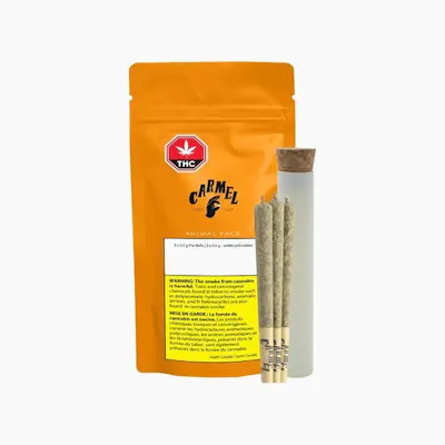 Visit Cannabis 4 Less to try Carmel's Animal Face prerolls. At Carmel, making a great pre-roll means starting off with top-shelf whole flower and producing in small batches. Each of our pre-rolls is hand-filled into a slim cone and packaged in a pocket friendly tin with a humidity pack. Our Animal Face pre-rolls are made with, well, Animal Face. Created by crossing the Face Off OG clone with an Animal Mints male, Animal Face is a ultra-potent and flavourful sativa dominant hybrid. At Cannabis 4 Less we have the best.