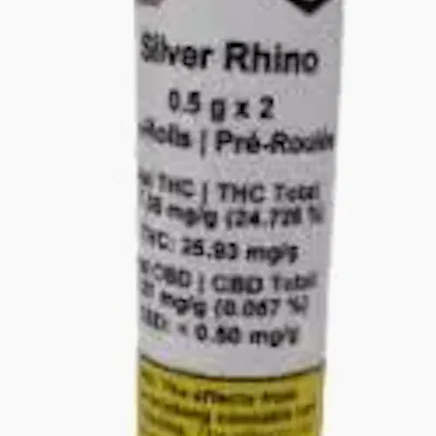 Craftport Cannabis' Silver Rhino showcases the best in British Columbia craft bud. This indica dominant strain is hand trimmed, hung to dry and cold cured to profection. These premium straight Pre-Rolls provide the perfect smooth experience for the cannabis connoisseur. This strain has a great terpene profile and has a strong gassy nose and flavour. Craftport's 2 x 0.5-gram Silver Rhino Pre-Rolls are packaged is packaged in a plastic tube.