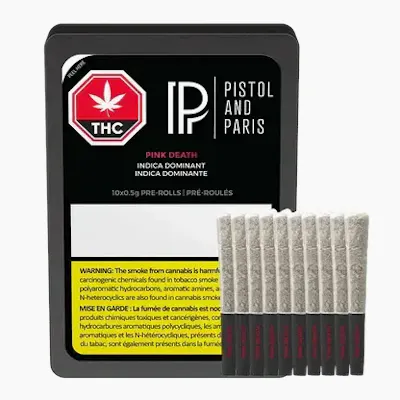 Pink Death is a cross of two renowned cultivars, Death Bubba and Pink Kush, known for its dank pine aroma and spicy, sweet earthy flavour. The 10x0.5g pre-roll pack includes ten expertly milled whole flower joints, hand-finished with a Dutch crown for a smooth, flavourful smoke.