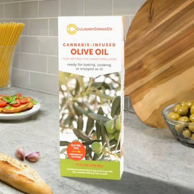 Elevate your culinary creations with a touch of Mediterranean magic. CulinaryCannaCo’s Cannabis-infused Olive Oil will be your newest gourmet recipe ingredient. Each sachet contains 1 tablespoon (.5 fl oz) of extra virgin olive oil (EEVO) infused with 12.5 mg of our lightning-fast 3-5 minute onset cannabis nano-emulsion. Drizzle over fresh mozzarella, tomato, and basil for the most unforgettable caprese salad or bruschetta! Marinating meats, crafting new recipes, or making a simple oil and vinegar dressing has never been easier. THC-infused extra virgin olive oil (EVOO) promises to enhance every meal with elegance and a delightful, healthy high. (Average THC nano-emulsion response times vary.) —--------------- 8 Pack contains: 4 Fluid Ounce 1 Sachet = 12.5mg THC 1 Box = 100mg THC