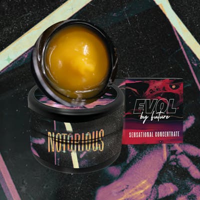 EVOL Notorious Live Badder is loud from the first dab. Double dose of GMO, this one's all about funk: garlic, onion, gas, all dropped in jet fuel. The live badder texture’s whipped and golden, easy to work with, and the flavor? Straight-up diesel umami that coats your palate and lingers. Expect a heavy body hit with a stoney head high that creeps. If you’re into full-flavored, full-effect concentrates, this one’s got your name on it.