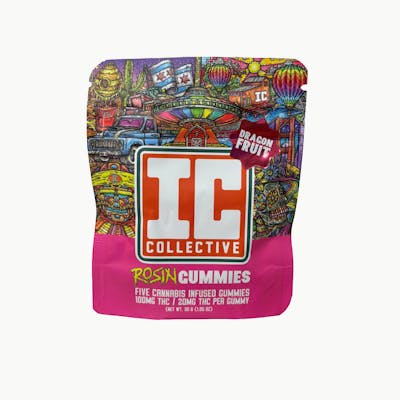 5 x 20mg THC live rosin gummies. These gummies open with a juicy burst of dragon fruit that blends tropical sweetness with a soft, refreshing citrus edge. These are a great fit for unwinding after work, low-key hangs, or anytime you want a flavorful reset that still feels functional. Keeping true to IC Collective's style, no corners were cut in the designing and refining process - made using no artificial food dyes, real sugar, all natural flavors, and pure Hash Rosin. Hash Rosin (a.k.a. live rosin) is a solventless concentrate made by gently washing frozen cannabis in ice water, then pressing the collected trichomes into a clean, golden extract. This process preserves the plant’s natural cannabinoids and terpenes, giving it a richer flavor and aroma along with a smooth, full-spectrum experience. Its purity and craftsmanship make it a go-to option for anyone looking for a more natural and true-to-the-plant concentrate.