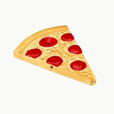 A real cheesy addition to your pipe collection! This ceramic pizza pipe has a fun 3-D look and feel. The bowl is a pepperoni piece; smoke filters through the slice to the mouthpiece at tip. Looks just like you're enjoying the real deal! - 6 1/2" long, 4 1/2" wide, 3/4" tall - made of ceramic