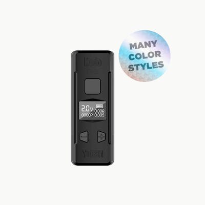The Yocan Kodo Pro Mini is a compact, sleek, small and easy to use palm-sized atomizer battery mod. 𝟴 𝗖𝗢𝗟𝗢𝗥 𝗢𝗣𝗧𝗜𝗢𝗡𝗦 - 400mAh battery capacity - USB type-C charging - digital OLED display - adjustable voltage setting - 510-Threaded connection