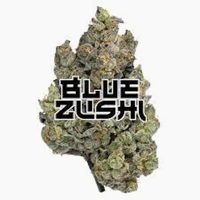 (ZkittlezX Kush Mints) Blue Zushi is a slightly indica dominant hybrid strain (60% indica/40% sativa) created through crossing the delicious Zkittlez X Kush Mints strains. Known for its gorgeous appearance and pretty well balanced high, Blue Zushi is perfect for any indica lover. This bud has small and fluffy rounded forest green nugs with deep blue undertones, vivid orange hairs and a thick frosty coating of gorgeous tiny blue-tinted white crystal trichomes. As you pull apart each sparkling little nugget, aromas of spicy flowers and rich earthy pineare released, almost like walking through a forest after a rainstorm. The flavor is of sweet earth and spicy flowers with a mellow herbal tea-like taste that lingers on the tongue. The Blue Zushi high comes on with a slow sneaking creep, sneaking into you before launching you into a lifted and energized state. You'll feel a budding euphoria accompanied by a tingly buzzy body high that quickly makes your energy level U-turn into deep relaxation and ease.