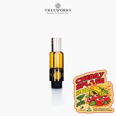 [Papaya Splash x Cherry Whip] Hybrid Effects: Uplifting, Relaxing, Creative, Calm, Happy Flavor: Berry, Citrus, Sweet Aroma: Sweet, Cherry, Papaya, Candy Terpenes: Limonene, Myrcene, Caryophyllene Cherry Splash (cross of Papaya Splash and Cherry Whip) by TreeWorks is a flavorful 0.5g live rosin cart that artfully blends sweet fruitiness with a smooth, uplifting experience. Many people find that Cherry Splash offers a bright, euphoric buzz that uplifts the mood while delivering a gentle body ease. It’s commonly noted to spark creativity and conversation, making it a beloved choice for social settings or solo chill sessions.