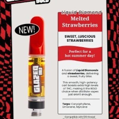 The BOLD GLAZED Melted Strawberries Liquid Diamond Indica Cartridge 1G is here to elevate your vaping game with sweet strawberry goodness and potent effects. It’s time to get bold and glazed!