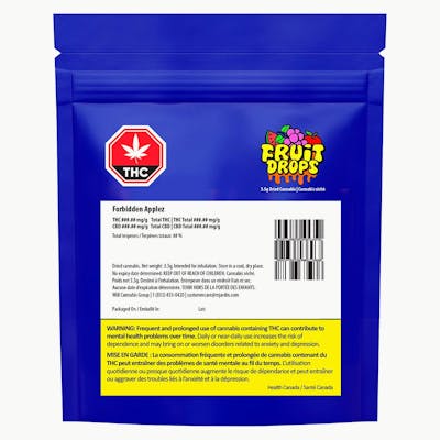 Fruit Drops is all about those fruity terpenes -- strains with flavour and aroma that could peel the paint off the walls when you open a bag. Forbidden Applez is a tasty hybrid strain that smells like a red candied apple. This cross of Forbidden Fruit x Sour Apple is a potent flower.