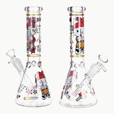 The Gangster Cat Beaker Glass Water Pipe stands 10 inches tall and pairs playful street‑style feline artwork with dependable water filtration performance. Crafted from durable borosilicate glass, this beaker‑style water pipe features bold decal designs of a cool, gangster‑themed cat that adds personality and attitude to any session. The stable beaker base supports smooth water diffusion, while the built‑in 3‑pinch ice catcher lets you add ice cubes for cooler, more refreshing draws. Complete with a removable slitted diffuser downstem and an included 14mm male herb slide with handle, this pipe is ready to enjoy right out of the box with reliable performance and standout style.