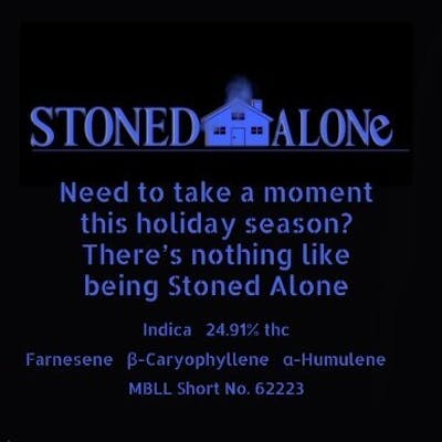 With all that's going on during the holidays, it's easy to become overwhelmed. Which is why we are pleased to introduce our Indica "Stoned Alone" at 24.91% THC, 2.176% terpenes. Perfect for those times when you just want to put up your feet with a plate of Christmas cookies and watch your favorite holiday movie.