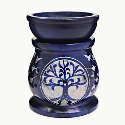 A soapstone oil diffuser, with intricate tree branch details carved into it. The bowl on top of the carved base features a deep base to handle as much oil as you want to diffuse. Use this natural soapstone oil diffuser to infuse your air with the vitality of nature enhance your well being and create a soothing atmosphere by bringing the power of 100% natural essential oils into your home. Benefits Purifies and humidifies while infusing your air with the healing power of plants. Releases negative ions to reduce dust, pet dander, and other airborne allergens (like dust mite matter) Refreshes the air in your space using 100% natural essential oil blends Features Carved intricate tree branch design Soapstone construction Directions Light a tealight and place it under the bowl of the diffuser Drop a few drops of essential oils into the bowl of the diffuse Sit back and enjoy the comforting and soothing benefits of essential oils