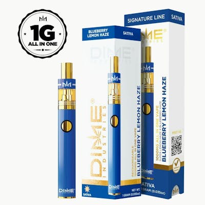 SIGNATURE LINE: Blueberry Lemon Haze (SATIVA) This flavor profile is a cross between Super Lemon Haze and Blueberry Haze. The sweet and sour strain provides an uplifting energetic buzz, becoming more euphoric as you smoke it. This flavor profile is reminiscent of sipping a fruity lemonade while smoking a joint on the patio during sunset. An instant classic, this flavor profile will keep you wanting more. Powered by Dime Industries hardware, this device offers 3 heat custom settings (4.2v to 3.2v), pre-heat function, easy air flow, and is USB-C rechargeable. Give your buds a delicious treat backed by the industry's most powerful battery! Genetics: Super Lemon Haze x Blueberry Haze Effects: Happy, Uplifted, Energetic Terpenes: Limonene, Beta Caryophyllene, Terpinolene