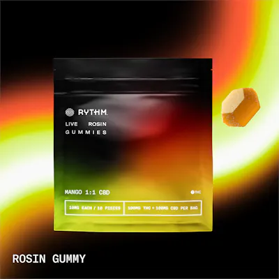 CBD: 2.07mg/g | THC: 87.82mg/g | THC9: 2.06mg/g -- RYTHM Live Rosin Gummies are crafted with a commitment to consistency and reliability you can expect from the #1 Flower Brand in the World¹. Offered in flavors inspired by some of the heaviest hitters from RYTHM's iconic strain line-up, these Vegan-friendly, Pectin-based gummies are handcrafted in small batches for optimal quality. Using Rosin that's crafted using only ice, water, heat and pressure, RYTHM Live Rosin Gummies deliver a delicious solventless gummy experience. Expect melt-in-mouth textures, authentic fruit flavors and a reliable experience. Serving size: Standard serving is a single gummy. Onset & duration: Onset may take up to 2 hours. Duration can last up to 3+ hours. Effects vary by individual. Estimates are based on a standard serving. Storage: Keep in original sealed container between 60°F - 80°F. Avoid conditions of high humidity and temperature. Keep out of direct light and do not store in hot car. Cereal Milk [orig: Strawberry Lemonade x Thicc Mint Cookies] pours out sweet berry and vanilla aromas with a creamy cereal inhale and smooth mint finish. ¹Based on BDS Analytics data, 2025 Year to Date through November 2025. #1 position is based on Revenue generated through branded cannabis flower sales in all markets tracked by BDS Analytics.
