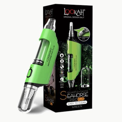 Next Generation Seahorse Pro Plus electronic nectar collector for wax concentrates and extracts in 2022. -- **To ensure the tips last as long as possible, make sure you burn all the concentrates off the tip after each use. If you allow concentrates to build up on the tip or inside the airways, it can harden and possibly ruin or wear out the tips prematurely. ** -- **Don't clean the Seahorse tips with the cleaning brush or any liquids/solvents, as this can damage the tip.** -- Lookah's Seahorse Pro Plus nectar collector takes the evolution of the popular Seahorse dab pen to the next level. The aesthetics and design are in keeping with the Seahorse Pro. The distinctive glass mouthpiece is removable for easy cleaning. The standard coil cap now has a magnetic connection, so it's more convenient and won't work loose or fall off. -- The Seahorse Pro Plus vape pen comes with a new type of tip: an improved, more durable porous quartz tip. This features a clear glass surround to see the vapor from when it vaporizes from wax on the tip right the way through the mouthpiece. -- The battery is 650mAh which should see you through 10 to 15 dabs (depending on the mode and temperature settings) for each full charge. When it comes to charging, the Seahorse Pro Plus has a type C USB port, so there is no faffing with getting the cable the right way around. -- The Pro Plus nectar collector is compatible with all the 510 thread Lookah seahorse tips. You can check out the quartz tips (SKU: SCI-QZ), the ceramic tips (SKU:SCII-CK), the ceramic tube tips (SKU: SCIII-QT), and the quartz transparent tube tips (SKU: SCV-QZ) on the dab pen and wax pen subcategory page of our website. -- How to use the Seahorse Pro Plus -- The Seahorse Pro Plus features a manual mode and a session mode. -- Turn on the Pro Plus dab pen by pressing the power button 5 times quickly. Press the power button twice quickly to switch between the three voltage settings. Each voltage setting is indicated by a different color light around the power button. Mode 1: 3.2V (Blue) Mode 2: 3.6V (Purple) Mode 3: 4.1V (White) -- Once the desired temperature is selected, you can press and hold the power button to heat the tip. After a few seconds, start dabbing in manual mode. -- The session mode is activated by pressing the power button three (3) times quickly. The vaporizer pen enters a 15-second pre-heat indicated by a flashing light. After it will hold the set temperature for 30 seconds, enough time for an intense dab session. -- You can use the seahorse pro plus dab pen with a water pipe by connecting one end of the green hose and adapter (included) to the end of the mouthpiece and the other to the downstem of a water pipe. -- This item is intended for users 21 years of age or older, You must be 21 or older to purchase this device.