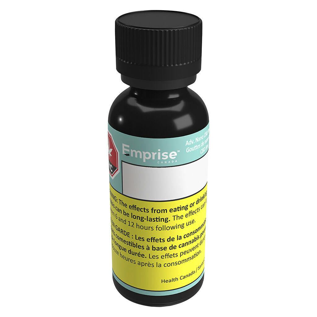 Emprise’s Adv. Nano CBD BevDrops contain 15 mg/g of CBD-dominant product in a water-soluble format. This product is formulated to be added to a beverage. Each bottle contains 30 g of emulsion (450 mg CBD) and a syringe with 1 ml capacity. One syringe dose delivers 15 mg of CBD. Perfected over 3 years of R&D to dissolve instantly in any beverage for a colourless, odourless and tasteless CBD infuser in your favourite flavoured beverage. The future of CBD consumption is here.