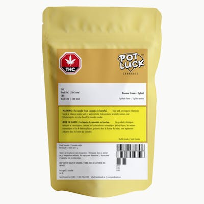 For the discount smoker looking for something different, Potluck is a new take on the “value ounce” – featuring whole flower pouches designed for mixing and matching your way to an ounce. Potluck is available in indica, sativa, hybrid 7 g options. The word “pot-luck” appears in the 16th century English work of Thomas Nashe, and used to mean "food provided for an unexpected or uninvited guest, the luck of the pot." Potluck dinners are events where the attendees bring a dish to a meal - a different meal. Potluck indica-dominant hybrid will launch with Banana Cream and will continually introduce new boutique strains as product sells out. This strain emits strong notes of bananas, with a hint of orange and spearmint, and expresses tight lime green buds.