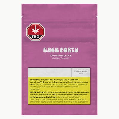 Back Forty’s Watermelon Ice is an indica formulation blending terpinolene, caryophyllene, limonene and myrcene to create a slushy, sweet flavour with a blast of icy menthol on the exhale. And 83-86% THC. Take a trip, explore the Back Forty.