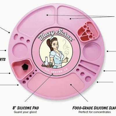 The Blazy Susan Spinning Rolling Tray is the namesake of the Blazy Susan brand, and is our flagship product. This one of a kind rolling tray is a game changer for any smoker’s set up. It is a new twist on the classic lazy susan that your parents might have had at their dinner table – rather than spinning salads and casseroles, this Susan is designed for your pipes, dab rigs, ashtrays, jars, grinders, papers, or anything else that suits your stoner needs!