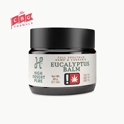 Full-spectrum extract meets refreshing eucalyptus. Two plant-based powerhouses for twice the fun! Ever wonder why koalas look so relaxed? We love the natural, refreshing powers of eucalyptus so much, we made a balm about it! Our high potency Eucalyptus Balm packs 1,200 mg of CBD, CBG, and THC in a 1:1:1 ratio into a portable 2 oz glass jar (made of recycled glass of course). This balm feels richer than lotion but just as smooth, providing slow absorption for long-lasting relief. Pro-tip: Try putting this balm on under your socks before bed. In the morning, your feet might just feel like the balm-diggity. 1200 mg of THC, CBD, and CBG in a 1:1:1 CBD:THC:CBG blend CBG formula – Anti-inflammatory and antioxidant-rich to help calm irritation and repair sun-damaged skin. Learn more. Formulated with Eucalyptus, Arnica, and vitamin E –Promotes recovery while calming and nourishing the skin Slow absorption – Designed to sink in gradually for steady, long-lasting relief Vegan, cruelty-free, and sustainably packaged – Better for your body, our furry friends, and the planet. The glass jars are made from 78% recycled glass and the lids are made with 100% reclaimed ocean plastic 2 oz recyclable, child-resistant jar