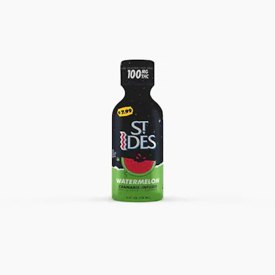 The heavy hit of ST IDES is now in liquid form! Watermelon flavor. Don't let the size fool you. Each 4oz bottle packs 100 MG of THC and is blended lemonade juice flavors. ST IDES Cannabis Infused shots work quicker than an average edible and allow for the most efficient absorption into your system