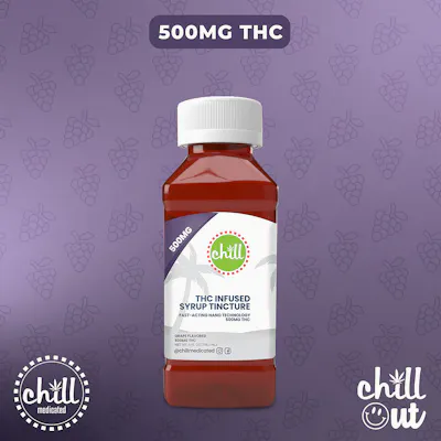 Chill Medicated Grape Syrup Tincture | THC Dosage: 500mg THC Activation Time: 15 Minutes - 1 Hours 120ML | 4 FL OZ Possesses a refreshing fruity Blue Razz taste. Tropical, fruity, and sweet. Carefully crafted by chemists, our nano-emulsified medicated syrup is fast-acting as it is water-soluble. Our syrup is sourced, produced, and tested locally. Looking for the perfect complement to your favorite beverage? Look no further. Take one teaspoon and ingest under the tongue or dilute with your choice of soda, water, or other beverages. Wait up to 1 hour and increase dosage as necessary to reach desired effects. Store in a cool environment and keep out of direct sunlight to preserve potency and flavor.