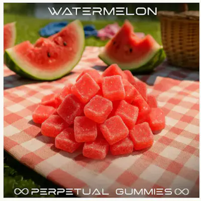 100mg THC per bag | 5mg each Watermelon refreshes with crisp watermelon juice, cool green rind, and soft sugar notes. Each piece is infused with distillate for consistent dosing and crafted for a smooth, balanced effect. Made to last, these gummies are vegan, and gluten-free, making them a reliable treat wherever you go. Fresh - Potent - Affordable - Perpetual Gummies.