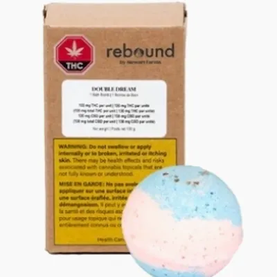 This bomb features loads of soothing, moisturizing mango butter and a relaxing blend of lavender, frankincense, and chamomile aromas. Each fizzy sphere is double-infused, with a balanced blend of 100mg of THC and 100mg of CBD per bomb. As always, Stewart Farms’ bath bombs are handcrafted and free from drying alcohols or synthetic fragrances and packaged in biodegradable shrinkwrap and a child-resistant carton.