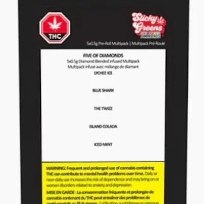 Sticky Greens - Five of Diamonds Infused Pre Rolls - Hybrid - 5x0.5g