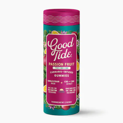 Take your mellow to the next level with Good Tide Passion Fruit THC:CBD:CBN gummies. An Indica single-strain rosin is enhanced with an extra dose of CBN and CBD’s relaxing properties and the tropical delight of passion fruit flavor to help you sway into the perfect hammock nap.