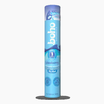 The Boho Blueberry Double Infused Preroll features a rich blueberry flavor with a smooth, slightly sweet profile. Each inhale delivers notes of ripe, juicy blueberries layered with subtle hints of tart berry and light herbal undertones. The aroma is fragrant and fruity, releasing a deep blueberry scent with a soft, earthy finish.