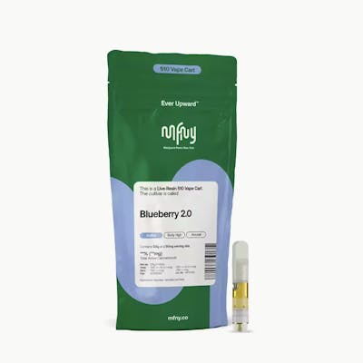 The MFNY live resin vape cart has a terpene-rich profile of our single-source, in-house produced Blueberry 2.0 real live resin. We start with fresh-frozen flower buds, then use the hydrocarbon extraction method (plus years of experience and scientific precision) to deliver the purest plant extract. An extract that showcases the cultivar's naturally-produced, full-spectrum cannabinoids and remarkable natural terpenes. Blueberry 2.0 brings about notes of blueberry and watermelon candy; known to promote an arousing body high with long-lasting, invigorating cerebral effects that spread to your whole body. No distillates, added flavors, or alterations. Comes in a 510 Cart with recommended battery settings 2.8 - 3.3V. Do not vaporize live resin at higher temperatures, as it can “burn off” the precious terpenes and aromas we are working hard to preserve; higher temps can also cause an undesirable “burnt” aftertaste. Vape cartridge contains concentrated live resin oil that is heated by a battery and vaporized for inhalation. These products are very potent and are designed to be consumed in 2-3 second puffs.