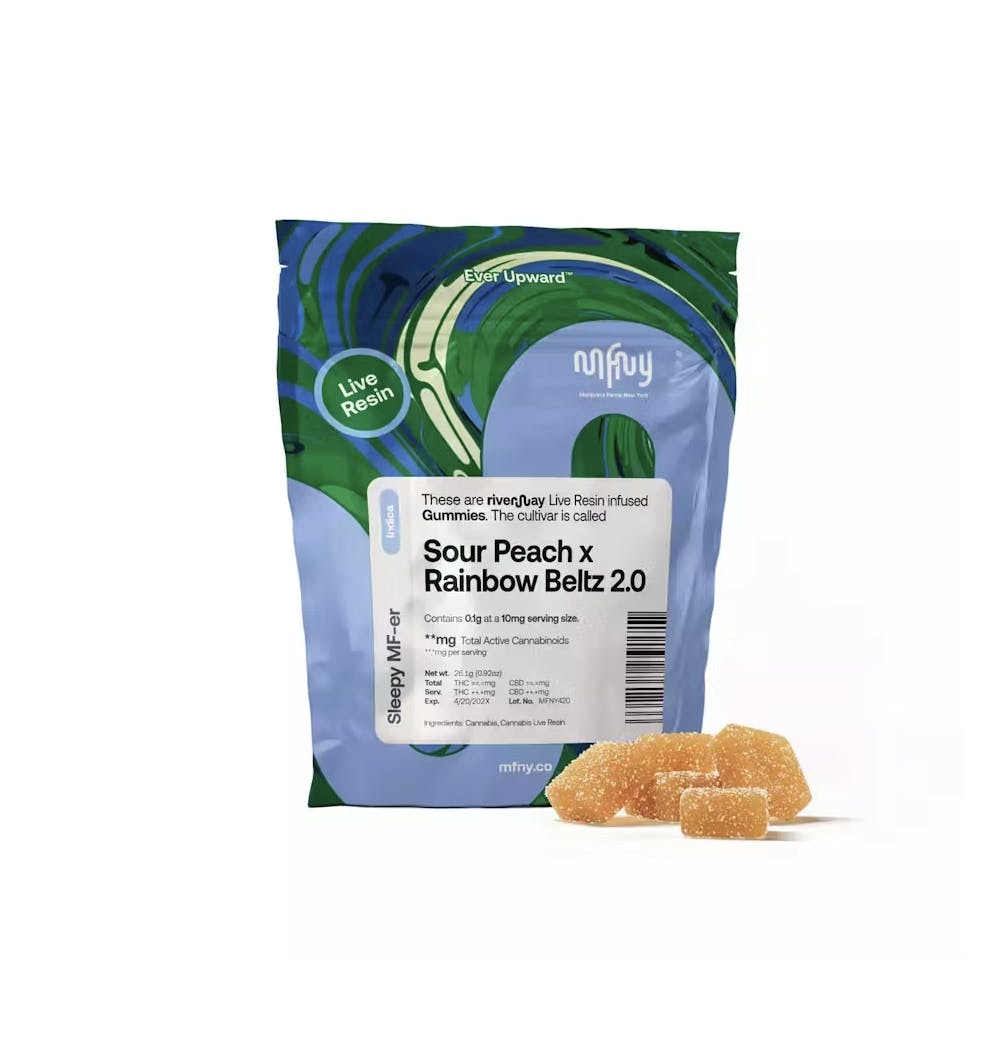 mfny | Sour Peach (i) x Rainbow Beltz 2.0 Live Rosin Gummies 10mg/10pk