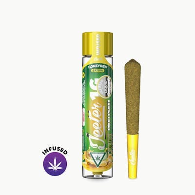 Honeydew Jeeter Infused Rolled Joint: 1g Joint | Sativa | Indoor Grown Infused with Liquid Diamonds & Kief Mood: euphoric, relaxed, hungry. Honeydew is a Sativa dominant strain that keeps you motivated, making it an ideal strain for an afternoon adventure or creative escapes. It has a tasty sweet melon and fruity berries flavor profile. You can experience happy, creative, euphoric, relaxing and uplifting effects. Honeydew helps with anxiety, chronic pain, and stress.