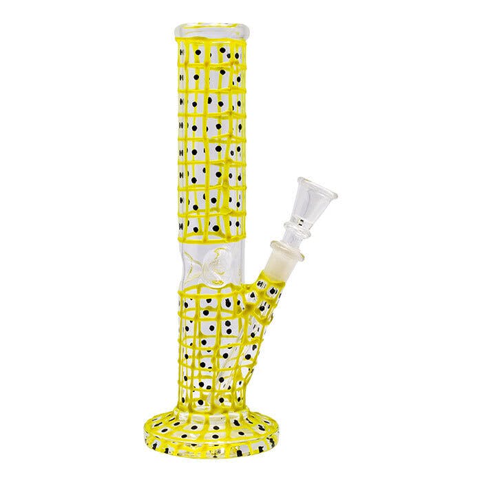 Yellow Hand Painted 10 Inches Cylindrical Dotted Glass Bong