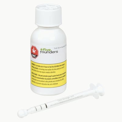 Five Founders THC Oils are CO2 extracted from mid to high THC cannabis strains grown indoors in a state-of-the-art pharmaceutical grade facility. Five Founders' extraction process is designed to efficiently convert quality dried cannabis flower into a quality finished product using a premium olive oil as a carrier. The bottle is fitted with a perfect dose dropper top. Enjoy 6.2mg THC per activation (4 drops). * Each bottle contains about 600 drops.