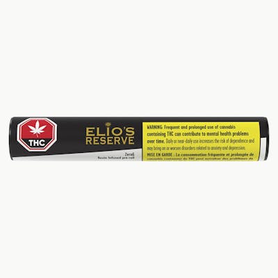 New addition to our Elio's Reserve family of products, is our high potency rosin infused pre-roll. Crafted by our extraction team, this solventless, golden, terpene rich rosin is combined with our whole flower. We just married two high quality ingredients for your pre-roll enjoyment. This infusion makes the flavour profile of fruity, diesel and warm spices notes bold with boosted potency.