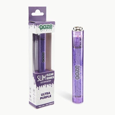 The Slim Clear Series is a basic vape battery that’s compatible with all types and sizes of pre-filled oil cartridges and concentrate attachments. Power it on and off by clicking the button 5 times. Quickly clear any clogs in the cartridge airway without straining your lungs by running a cycle of prep mode before each vape session. Click the button twice and wait until the light stops flashing to take your hit. With a strong pull, any clogs should clear easily! This flex temp device has three voltage levels. Change the voltage level by clicking the button 3 times. Each temperature has a different light color so you never get confused on how hot your device is heating. Low is blue (2.7V), medium is green (3.3V), and high is red (4.0V). We recommend always using the lowest voltage for pre-filled cartridges.