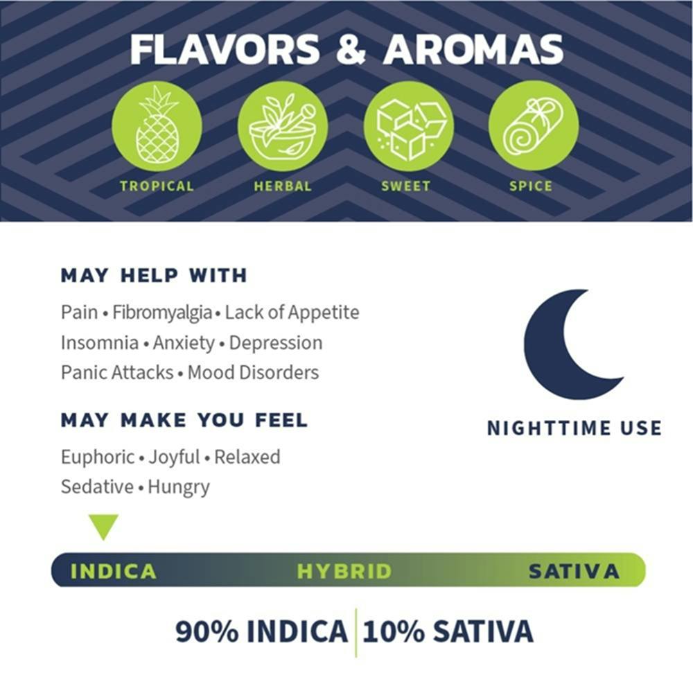An uplifting and energizing strain known to leave users motivated, focused, and ready for any activity or endeavor that comes their way. Euphoric and stimulating tendencies make this a good potential option for anytime of day. - Tangerine Skunk x Northern Lights - Sativa Dominant Hybrid - 70% Sativa / 30% Indica - Flavors & Aromas: Sour, tropical, lemon, and diesel. - Effects: Focused, Energized, Euphoric, Motivated, Creative, and Introspective. - May help with these conditions: Anxiety, Mood Disorders, Nausea, Migraines, Pain, and Lethargy. -- .5g THC - 353mg