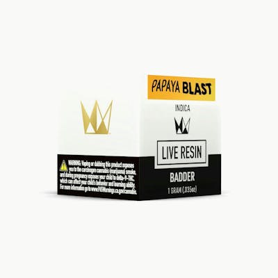Papaya Blast Live Resin Badder is an Indica leaning extract that produces a fruity nose, a tropical taste, and is known for cultivating a relaxed mindset. Extracted from a phenotype of the Papaya cultivar (Corral x Ice), Papaya Blast produces a rich taste of mango and papaya, with a spicy kiwi finish. The high from Papaya Blast hits like a refreshing shockwave of euphoric joy.
