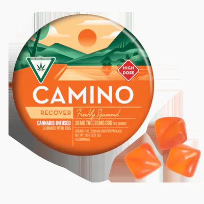 Picture this: You've just wrapped up a hectic workday, your mind is racing with thoughts, and your body is feeling tense. This is the perfect occasion to reach for Camino Freshly Squeezed Recover gummies. Each gummy contains 20MG of THC and 20MG of CBG, along with hybrid-like terpenes that work together to create a harmonious blend of relaxation and balance. 20mg THC per piece 20mg CBG per piece 200mg THC per pack 200mg CBG per pack
