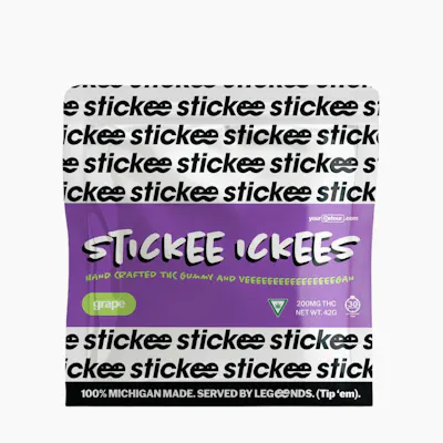 THE FAQS of STICKEE ICKEE: Grape WHAT IS THIS FLAVOR? This is Grape, smooth, juicy swagger with just enough tart to keep it interesting. WHAT IS THE DOSAGE? 200MG, split into five purple power-ups. Level up wisely. IS IT VEGAN? Yes. As plant based as a vineyard on a Sunday afternoon. IS THIS HAND CRAFTED? Yup. Crafted the way grandma used to make jam, but with way more THC. WHERE WAS THIS EDIBLE MADE?. Born and raised in Michigan. Like a fine wine in Traverse City, but way more fun. CAN I DEEP FRY IT? Please don’t. (But send us pics if you do.) CAN IT BE USED AS A FRIENDSHIP BRACELET? Only if your friends like snacks more than jewelry.