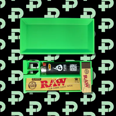 The Hit Kit Travel Pack is an all in one kit that is ready to go with you on all of your adventures! The kit includes the following items: 1x Holder / Rolling Tray 1x Pure Lighter 1x Pack of Raw Organic Hemp King Size Slim Papers 1x Pack of Raw Classic King Size Slim Papers 1x Raw Original Tips 50 Pack