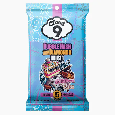 Cloud 9 Classic Mini-Rolls are a 5 pack of 0.6g diamond and terp infused flower crowned with solventless bubble hash extracted onsite at Exhale Systems. Total weight is 3g per package, and comes in a metal, child-safe tin. Motown Pound Cake Smooth and full of Detroit soul. Motown Pound Cake is for laid-back legends, the kind of high that wraps around you like a slow jam and doesn’t let go. Flavor Profile: Sweet Cream · Lemon Cake · Gas Effects: Sedative Euphoria · Deep Relaxation Primary Terpenes: Limonene, Myrcene, ß-Caryoph