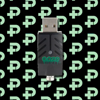 The Ooze Smart USB Charger is compatible with all 510 thread vape pen batteries and screws directly onto the top. It features a safety mechanism that prevents overheating.