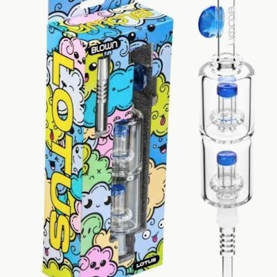 BLOWN Glass Goods Lotus Nectar Collector – Double Perc w/ Titanium Nail in BLOWN BOX – Available in 3 Colors Products may vary in color and shape due to the nature of hand blown of glass.