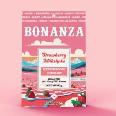 Dive into a perfect blend of bliss & strawberry milkshake. 10 pieces | 10mg THC per piece | 100mg package --- Bonanaza Cannabis Bonanza Cannabis Company is a family-owned and operated business built on passion, craftsmanship, and a commitment to excellence. With a nod to the pioneering spirit of the West, Bonanza’s modern approach reflects its roots in the American frontier, where innovation meets tradition. Known for producing premium concentrates and edibles, Bonanza Cannabis Company is a brand that stands for quality, consistency, and an elevated cannabis experience. Every product is handcrafted, ensuring that each consumer enjoys the very best of what Bonanza has to offer.