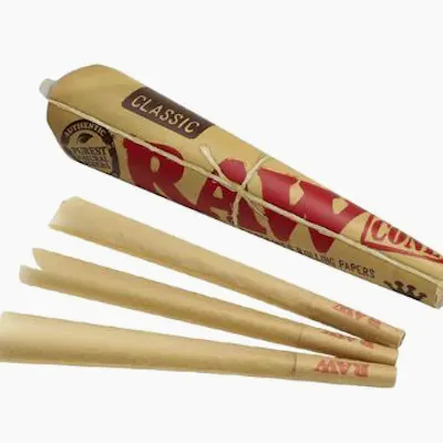Raw Classic King Size Cones - 3 Pack RAW Classic King Size Cones have revolutionized the smoking industry! That’s no exaggeration – they’re as easy as it gets! RAW’s precision-crafted pre-rolled cones are made from the same truly naturally unbleached paper as RAW Classic Papers and are ready to be easily filled. Genuine RAW Rolling Papers have no added chalk or dyes! Please don't overpack! Poor Packing is the #1 cause of burn problems! Includes: **1 pack with 3 x King size Cones