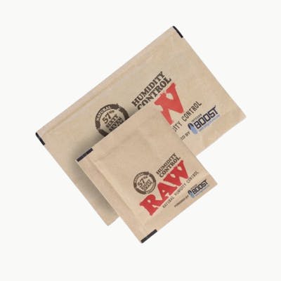 The RAW x Integra Boost 67-gram humidity pack is a collaborative power-move between RAW, the kings of rolling papers, and Integra, the leaders in clean humidity control. This "Boost" pack uses a specialized 2-way system that either releases or absorbs moisture to maintain a constant 57% Relative Humidity (RH) within your storage container. The 67g size is the "large format" pack, specifically engineered for bulk storage and long-term curing.
